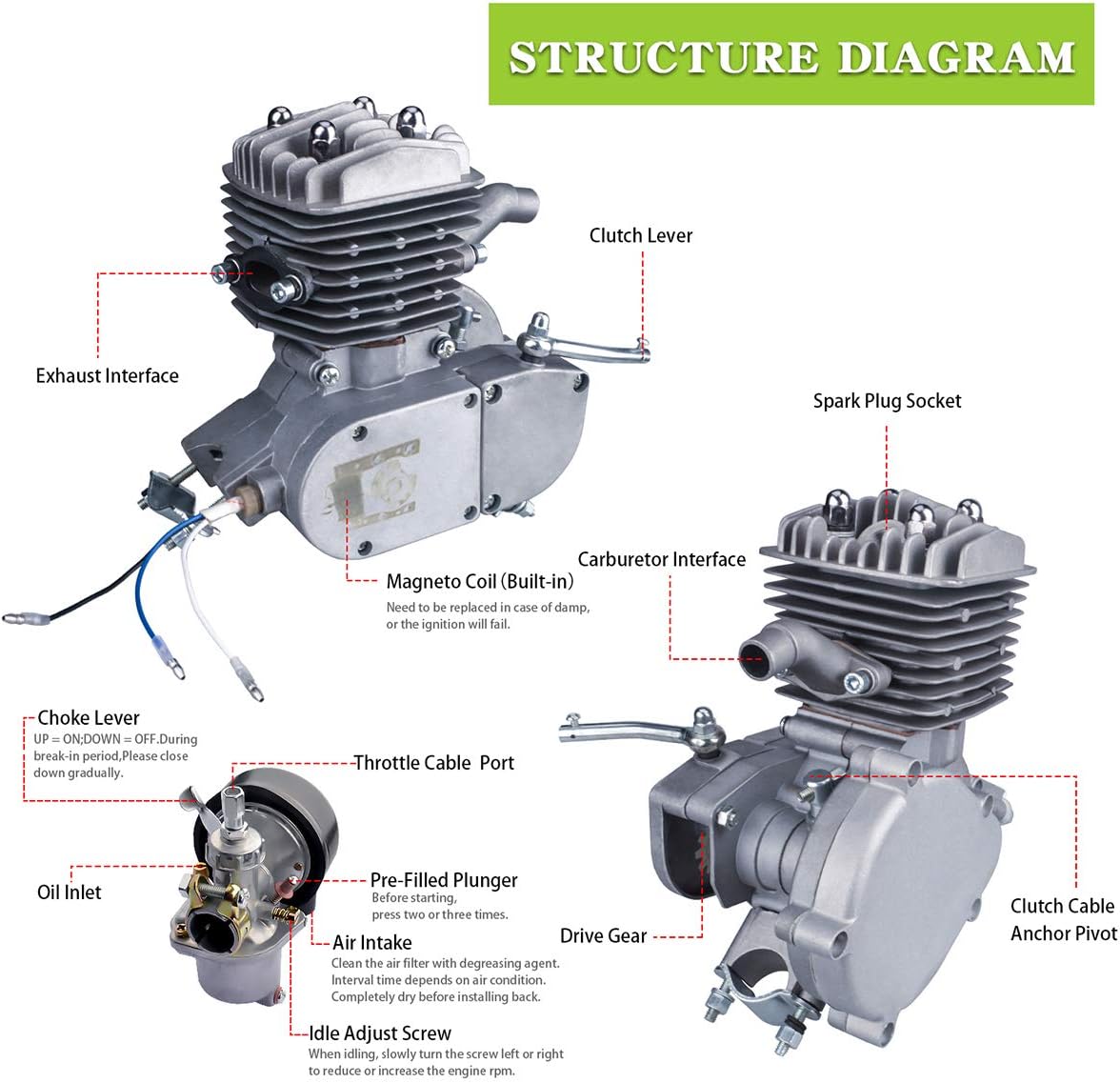 Amazon Com Yaheeda 80cc Bicycle Engine Kit Motorized Upgrade Bike 2 Stroke Conversion Kit Diy Petrol Gas Engine Bicycle Motor Kit Set For 26 28 Bikes Silver Home Improvement